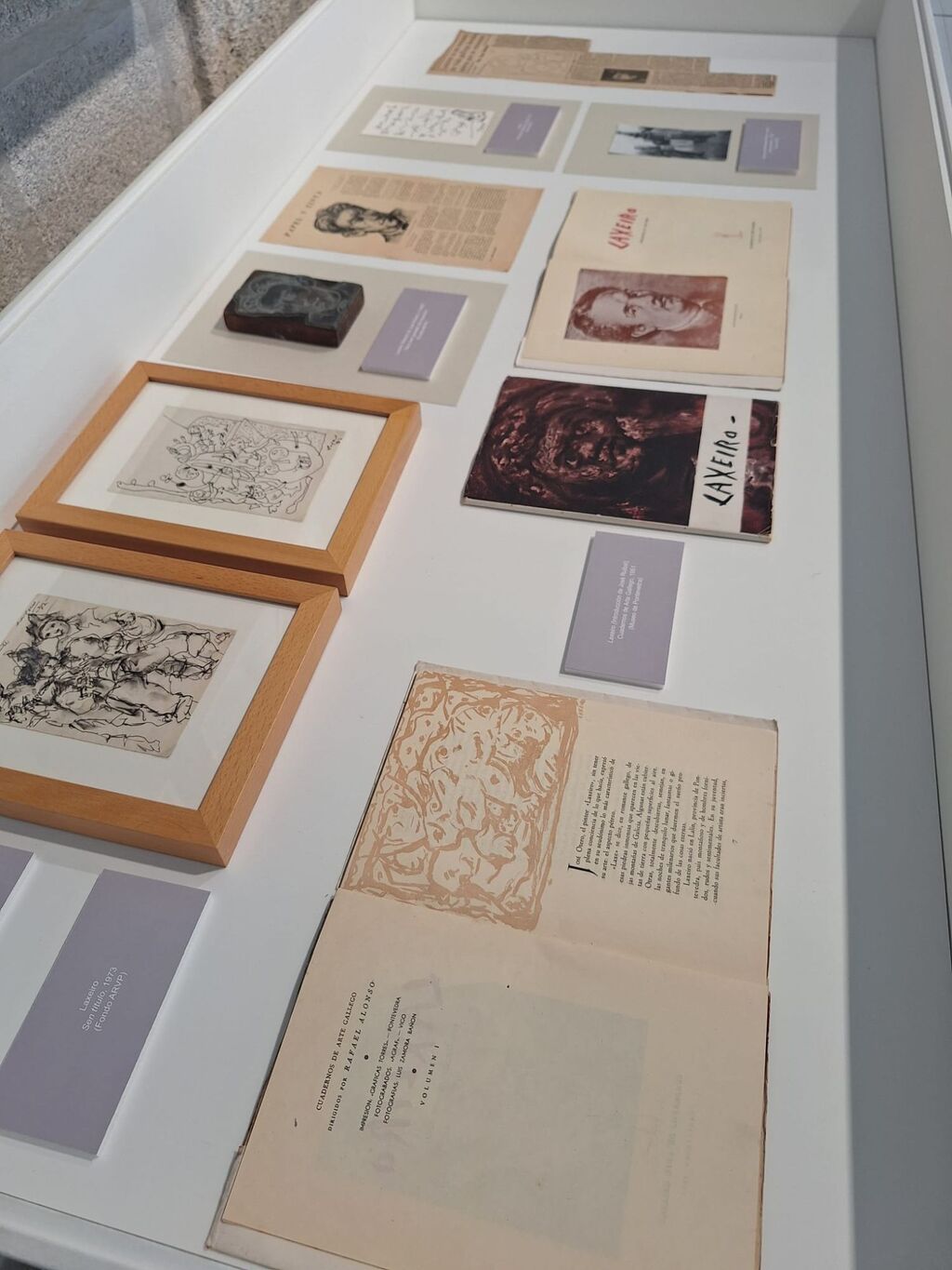 A súa intensa relación con grandes figuras coma Laxeiro, Luis Seoane, Isaac Díaz Pardo e Rafael Alberti teñen un lugar propio na exposición mediante obras artísticas. Tamén os seus primeiros pasos como poeta e xornalista en Pontevedra ao lado dos seus compañeiros da Colección Benito Soto, encabezada polo seu amigo Sabino Torres, que lle publica en 1950 El dios de los precipicios, o seu primeiro libro de poesía, con ilustración do pintor Rafael Alonso.
