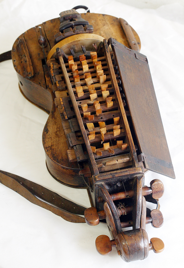 A presenza deste tipo de pezas na nosa entidade remóntase á propia fundación do Museo, pola Deputación Provincial, no ano 1927. Chegaron a nós a través da Sociedad Arqueológica de Pontevedra, institución creada en 1894 coa intención de salvar da destrución e levantar do esquecemento todos os obxectos que, dentro da provincia, tiveran interese arqueolóxico, histórico e artístico. Entre aqueles, motivado polo propio interese do fundador da Sociedad e primeiro director do Museo D. Casto Sampedro Folgar, encontrábanse unha zanfoña (R º 815), un pandeiro cadrado (R º 814), unha gaita grileira (R º 813), dous chifres (R º 817), uns ferriños (R º 816) e tres cuernas (Rº819-821). Un comezo discreto que se iría enriquecendo cos anos e de xeito constante grazas, fundamentalmente, a compras e doazóns. Así chegaron ata nós os instrumentos que no seu día pertenceron a dúas figuras destacadas no ámbito da nosa música tradicional: Faustino Santalices e Perfecto Feijoo. Ao primeiro achegariámonos a través das zanfonas, un total de sete de orixe diversa nas que sobresaen, polo seu estado de conservación, as procedentes da colección privada de D. Casto Sampedro. Do testemuño de Feijoo quédannos un pandeiro cadrado (R º 4593), unha pandeireta (R º 4594), unha zanfona dedicada a Sampedro (R º 5812) e dúas das súas gaitas, das cales destaca a tumbal con cobertor en veludo vermello e remontas en negro (R º 4591), utilizada de xeito habitual por el para as súas interpretacións.