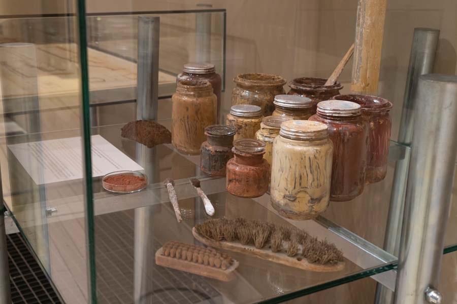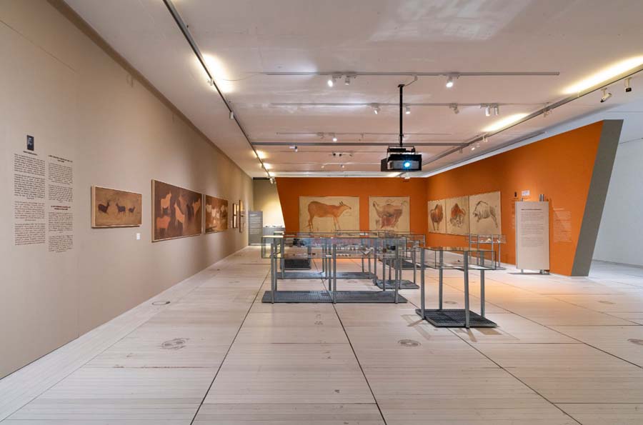 Inclúe calcos de figuras e paneis, a escala real e dunha beleza extraordinaria, creados por dous grandes especialistas nesta temática, Juan Cabré Aguiló e Francisco Benítez Mellado. Expostos por primeira vez en setenta anos, estes calcos contextualízanse con máis de 250 pezas procedentes das coleccións do MAN e doutras institucións como o Museo do Traxe e o Museo de Arte Moderna e Contemporánea de Santander. Entre elas, o público pode contemplar instrumental lítico, restos de fauna, ídolos ou vasillas cerámicas procedentes do contexto arqueolóxico das devanditas pinturas. Así mesmo se presenta diversa documentación e publicacións xeradas a partir das escavacións arqueolóxicas da época.