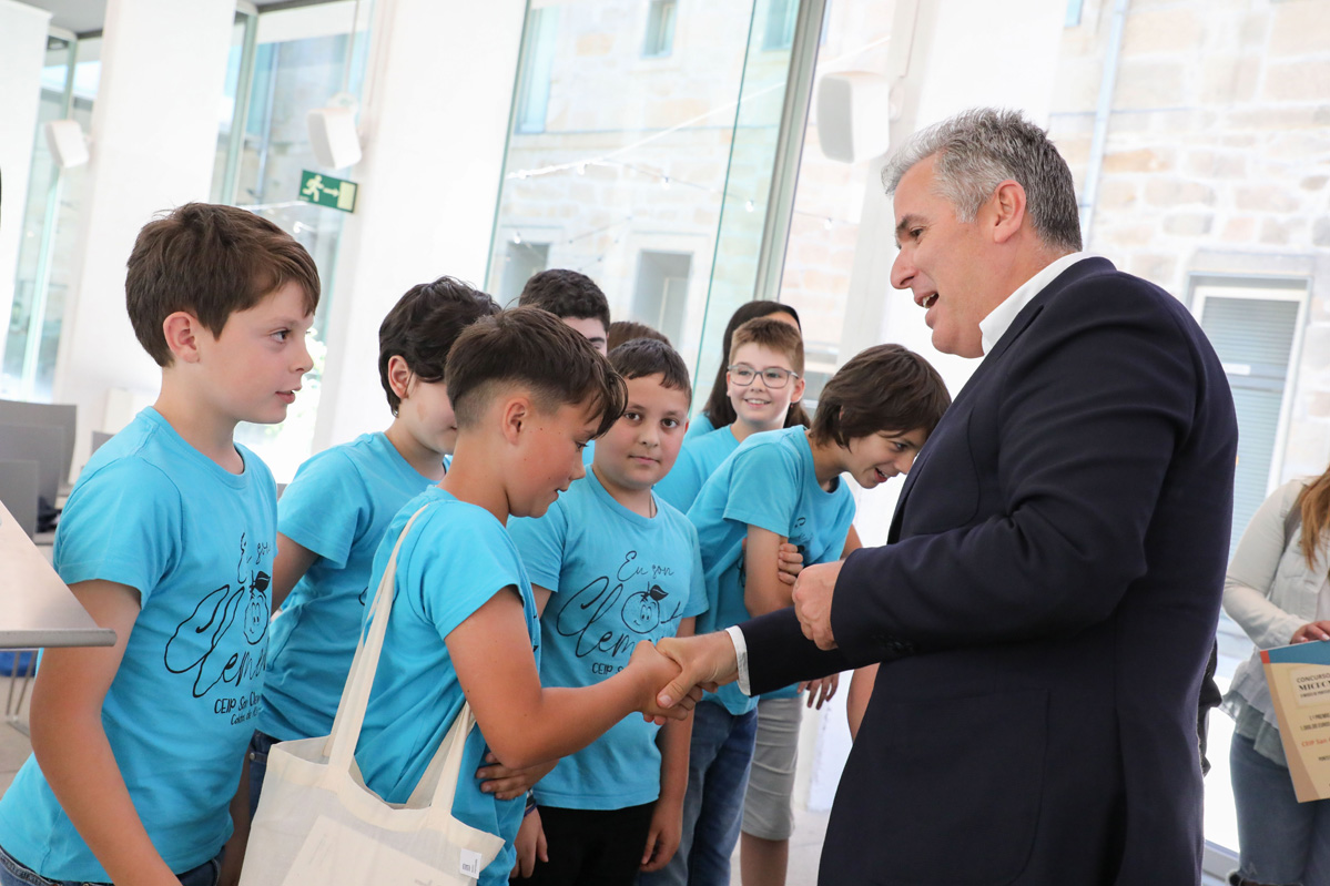 O vicepresidente da Deputación de Pontevedra, Rafa Domínguez, e a responsable do Departamento de Educación do Museo de Pontevedra, Sabela Santos Filgueira, entregaron hoxe os premios aos centros escolares gañadores do Concurso Micromuseo, convocado pola Deputación a través do Museo de Pontevedra e dirixido a centros escolares da provincia. Os gañadores foron grupos de alumnado do IES Pintor Colmeiro, de Silleda, do CEIP San Clemente de Cesar, de Caldas de Reis,  e do CEIP Plurilingüe de Domaio, de Moaña.