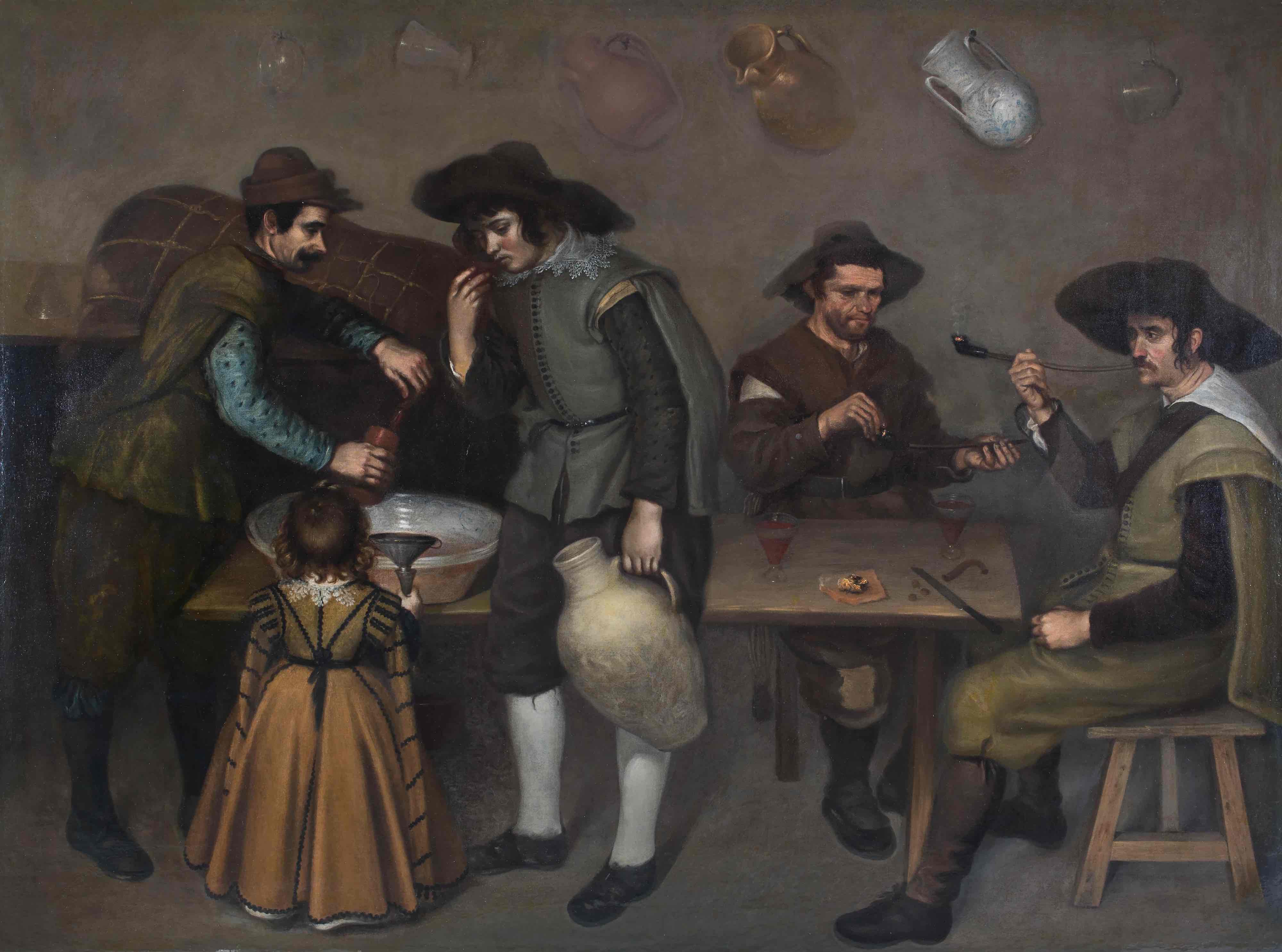 La Taberna es una de las obras más destacadas de la colección de pintura barroca del Museo de Pontevedra. En ella se representa una escena de vida cotidiana que recrea el ambiente en el interior de una humilde taberna, una temática, la de tabernas y mesones, asociada al género del bodegón, recurrente en la pintura europea del siglo XVII.