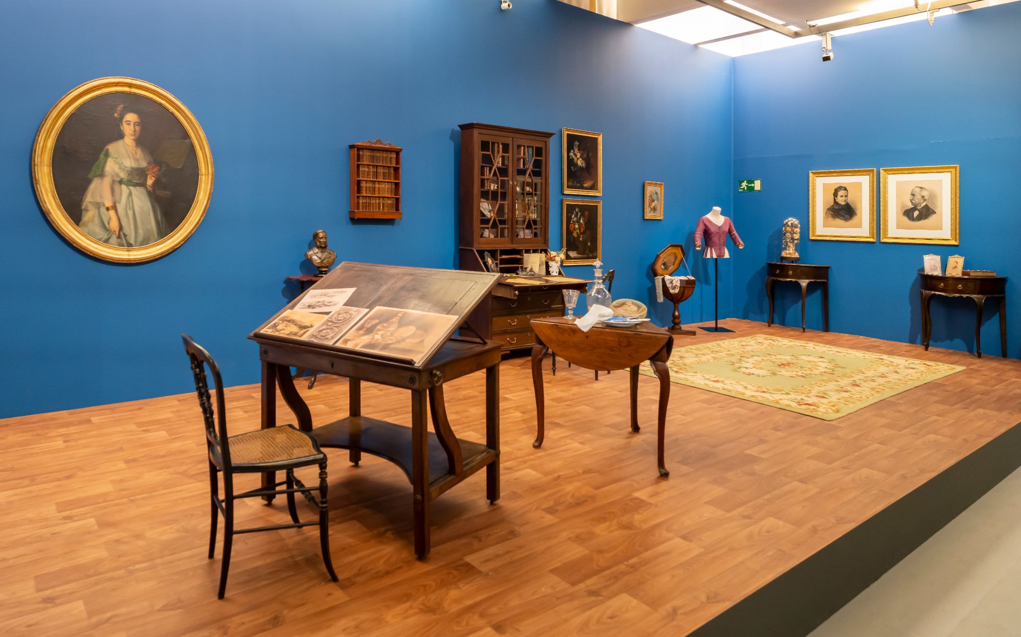 Además de objetos personales, obras de arte, libros, fotografías o ejemplos de su atuendo restaurados para esta ocasión, la exposición incluye también la recreación de dos estancias del Palacete de las Mendoza.